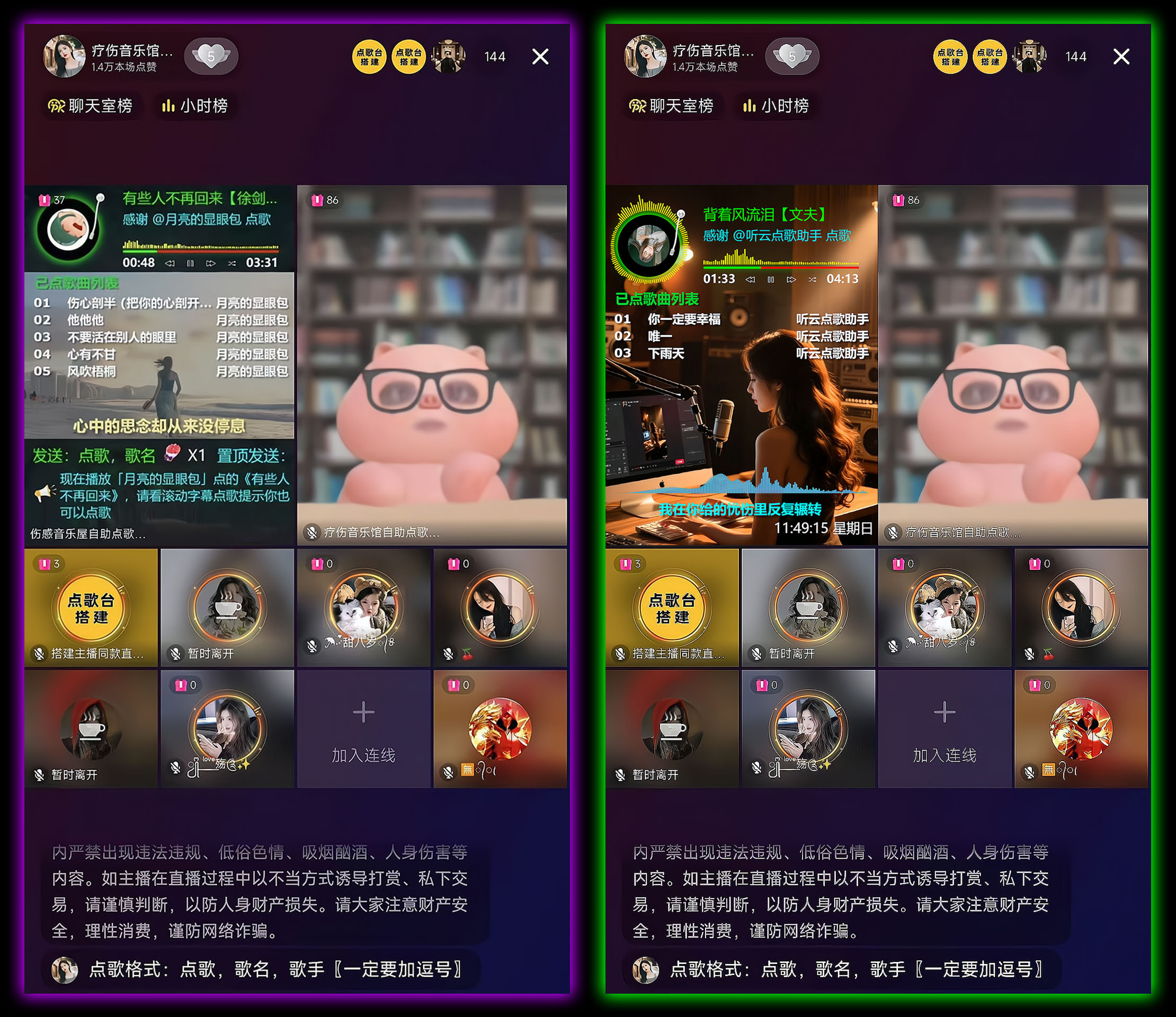 支持礼物或者积分点歌、置顶、切歌、续听、删歌、超级切歌,支持语音播报、文字弹幕播报,支持冷场讲解、礼物感谢、关注感谢、点赞感谢、直播间进人欢迎、关键词自动回复,支持deepseek、阿里云、腾讯云等多个大语言模型智能回复,支持普通用户组、粉丝团用户组、VIP用户组、管理员用户组独立自定义积分,支持横版、竖版、七宫格、九宫格、十宫格模板布局,支持阿里云、腾讯云、百度云三大语音接口,支持几百种男生女生普通话及方言发音模型,支持刷任何礼物召唤火箭、嘉年华、天空之城、宇宙之星、璀璨花海、秘境巡游、十里桃花等绝版震撼唯美特效、支持木鱼计数、音播特效、头像飘屏、贵宾席位